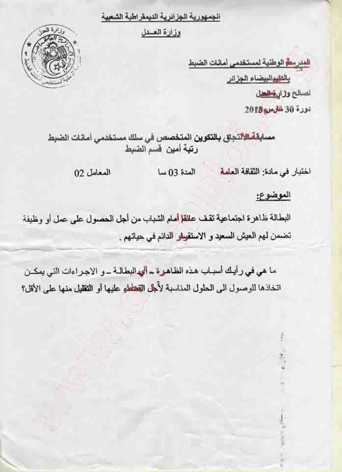 نماذج أسئلة مسابقة توظيف أمين قسم الضبط لوزارة العدل