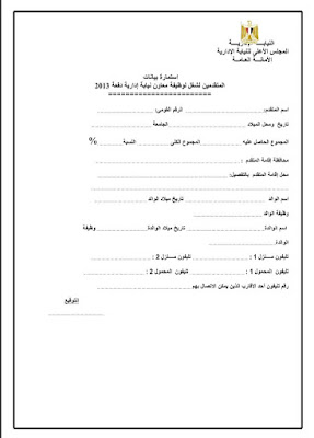 استمارة التقديم لوظائف النيابة الادارية لتعيين معاون نيابة دفعات 2013 2014 2015